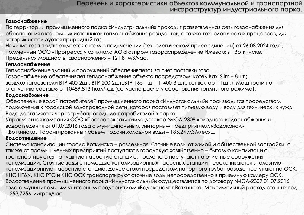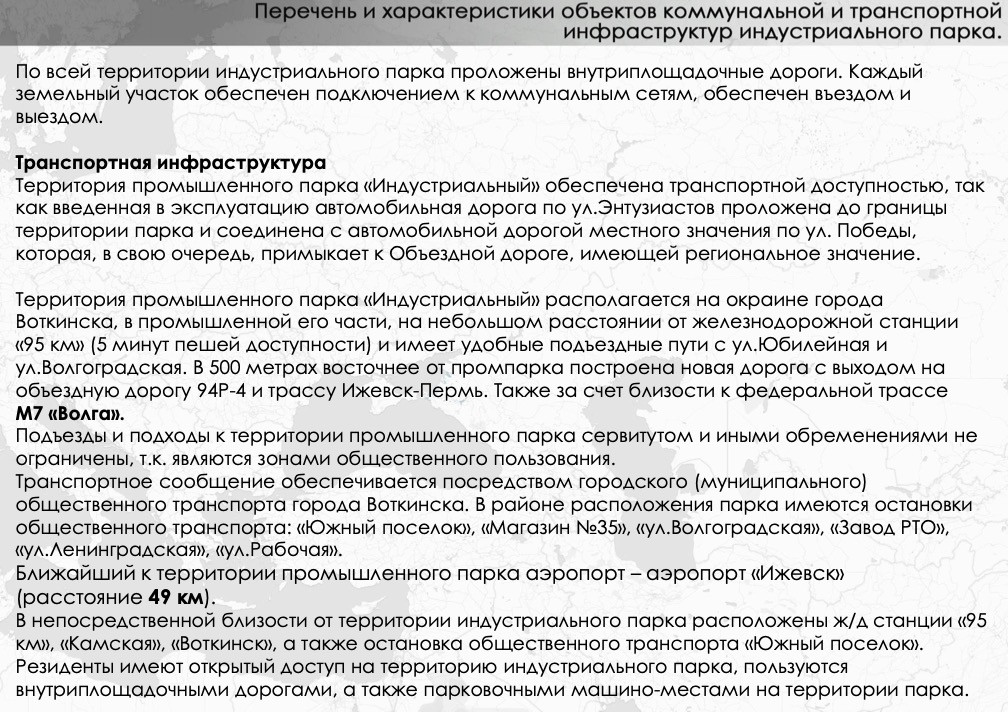 «Общая площадь зданий, строений промышленного парка составляет 30 027,0 кв.м. Полезная площадь зданий, строений Промышленного парка «Индустриальный» составляет 24 850,9 кв.м. (82,76 %). Доля полезной площади зданий, строений промышленного парка, предназначенной для размещения и ведения промышленного производства резидентов и (или) потенциальных резидентов, составляет 82,76 %%.